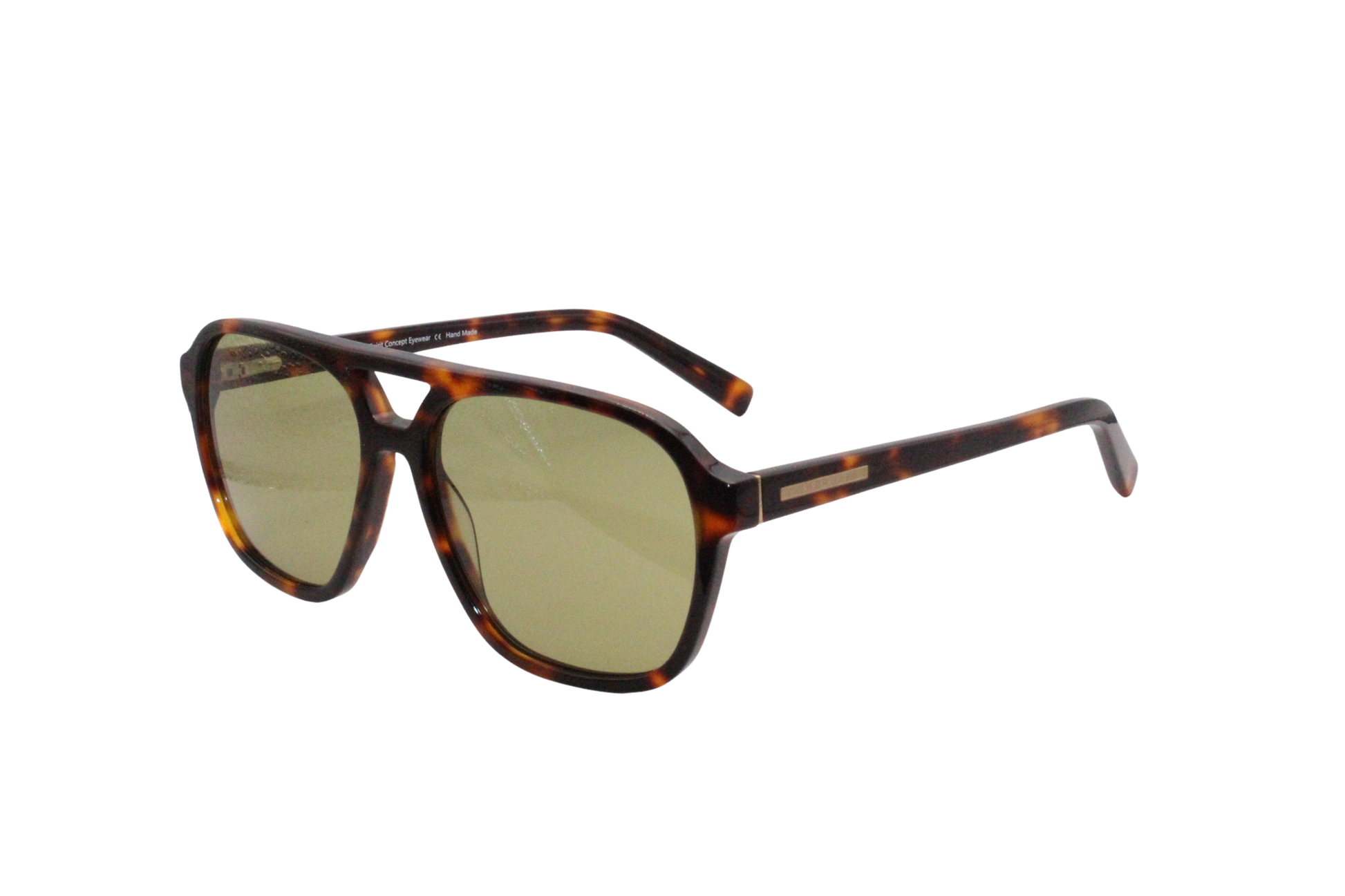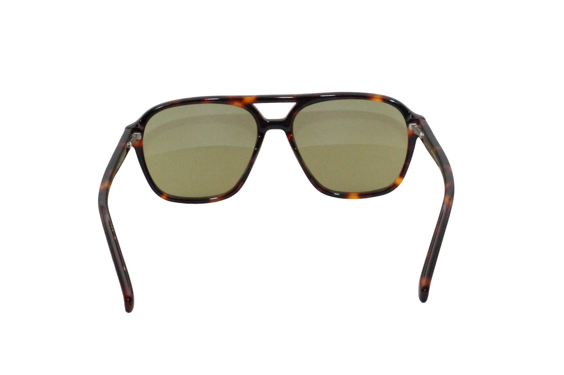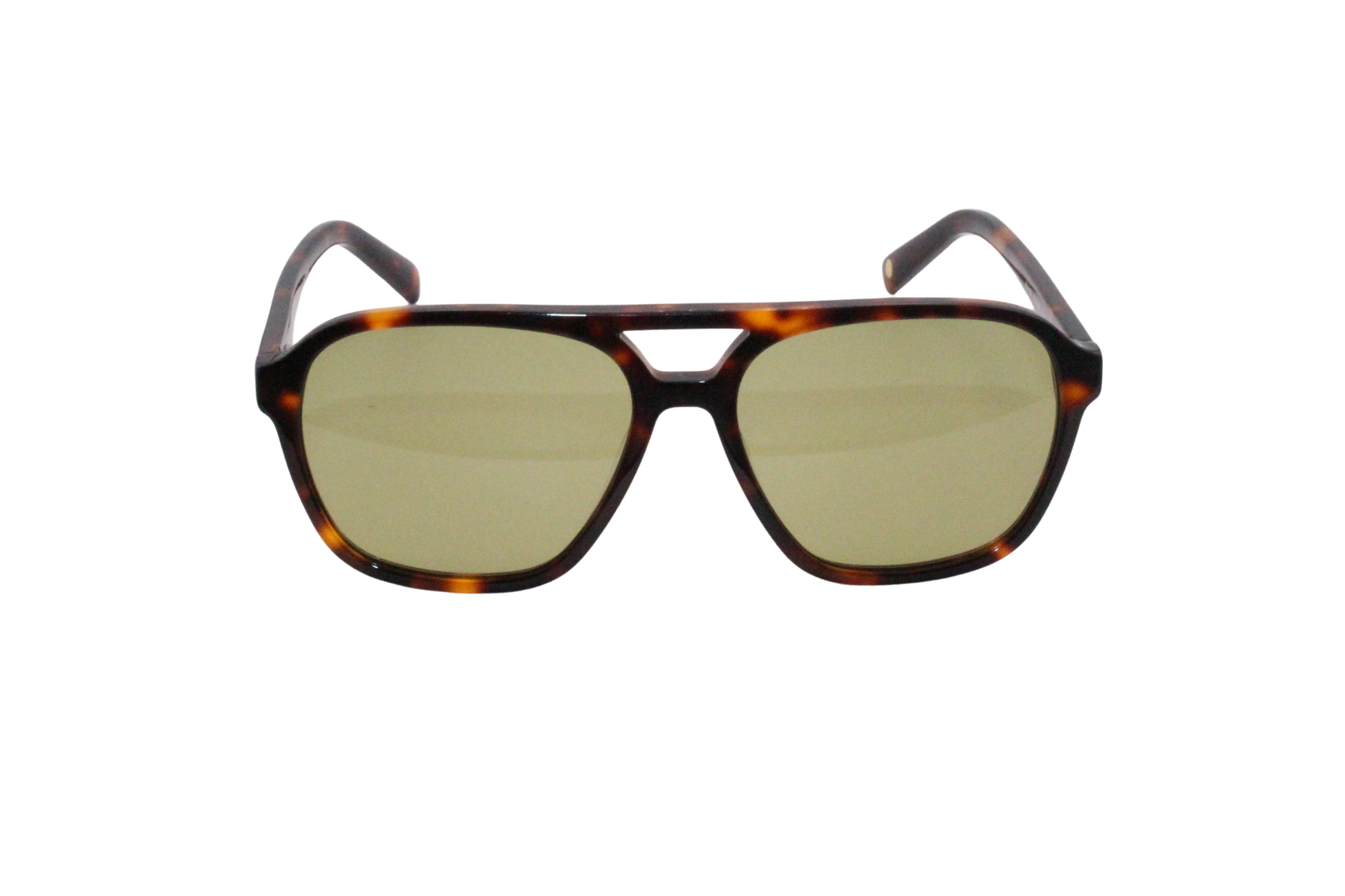 These sunglasses feature a tortoiseshell aviator-style frame with a double bridge and subtle green-tinted lenses, combining vintage charm with a modern edge.