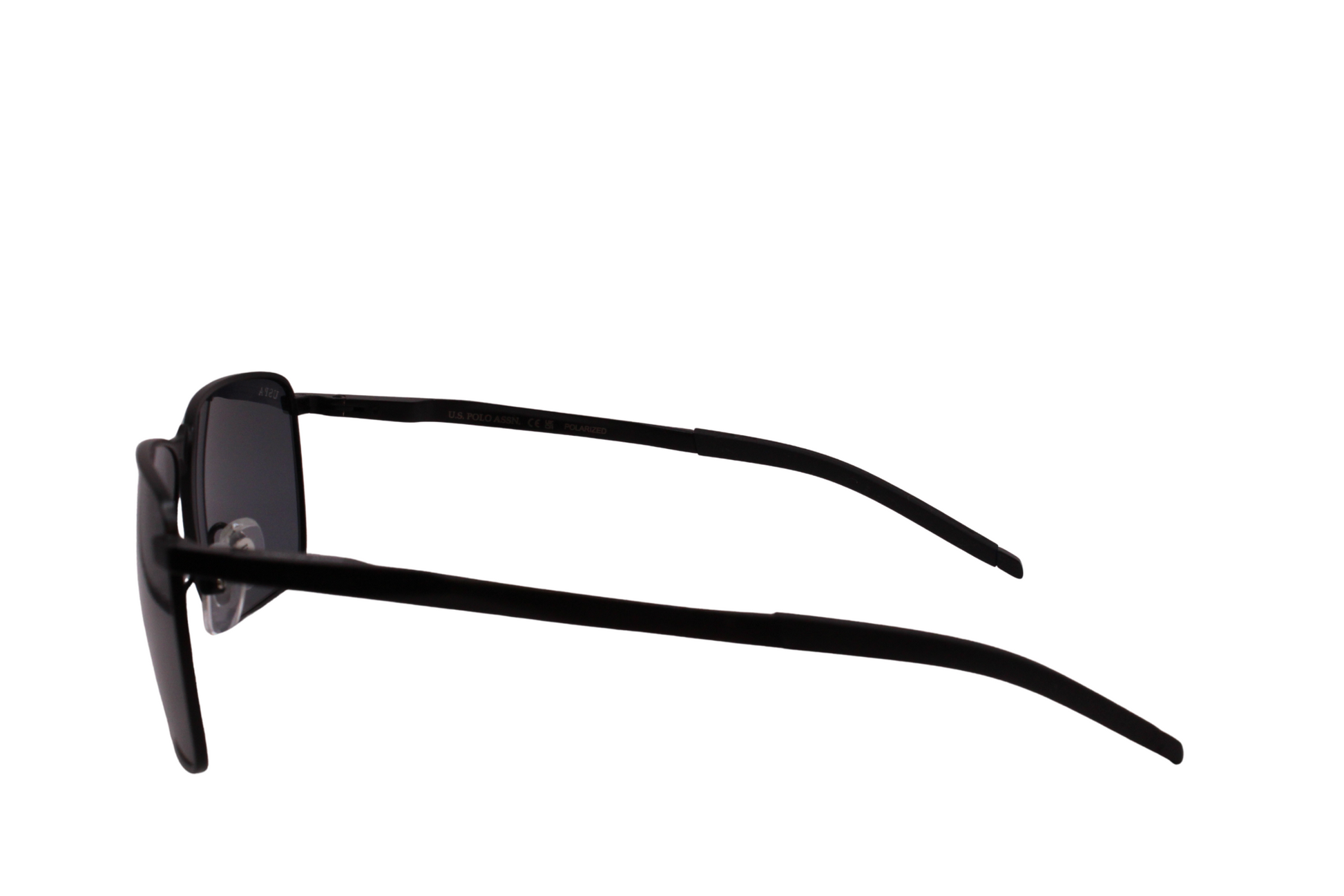 Square sunglasses with a sleek black frame and deep tinted lenses, offering a sharp, understated modern look.
